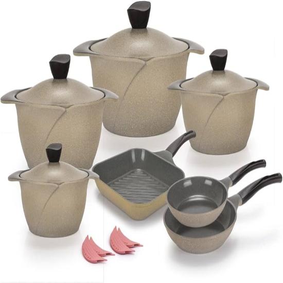 🍲أواني طهي من الألومنيوم غير لاصقة بلمسة نهائية من الجرانيت.