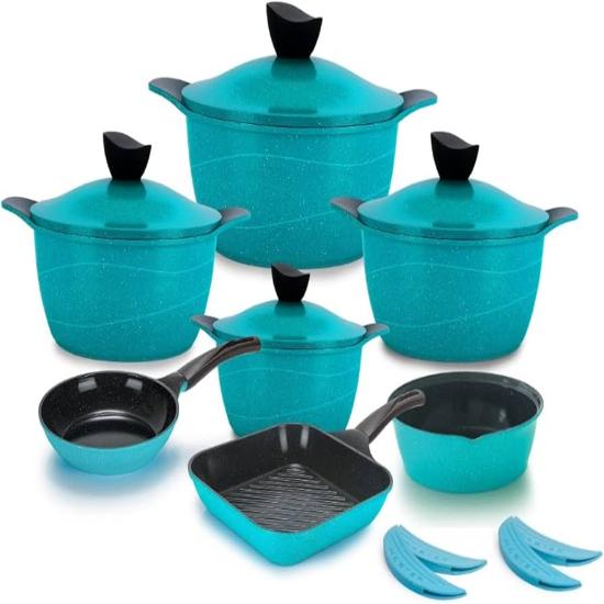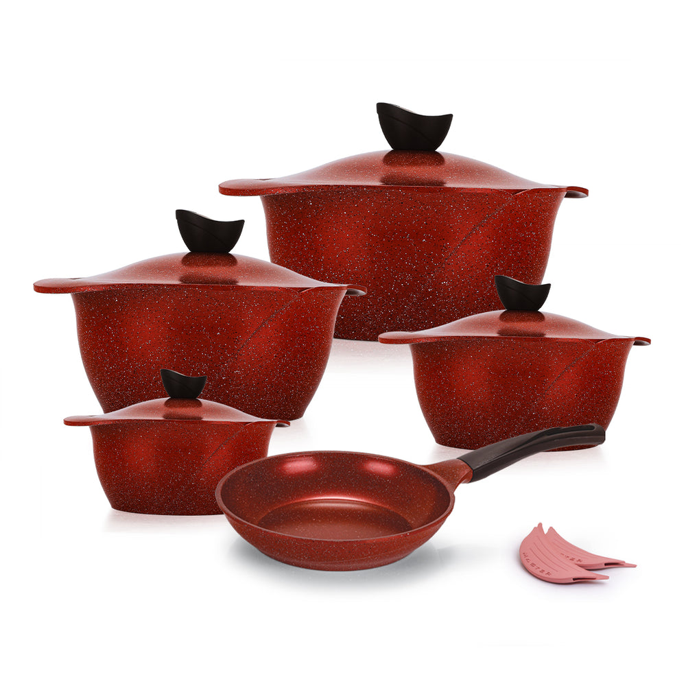 Pieces: 4 Pots (18-20-24-28) 1 Frypan (26) 2 Silicon pcs